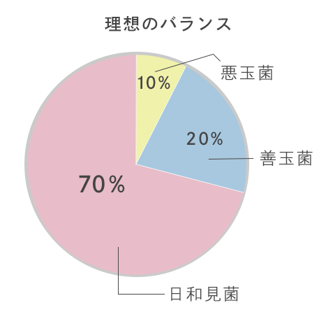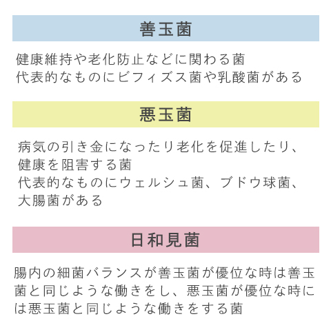 美腸とは腸内細菌が理想的なバランスで保たれている状態のことをいいます。腸の中には善玉菌や悪玉菌、日和見菌などの細菌が存在します。腸内環境をととのえるためにはこれらの細菌のバランスが重要です。