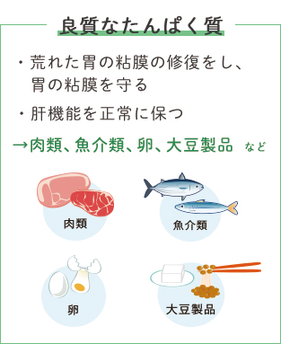 食べすぎたり、飲みすぎたりした際は胃を休ませ、胃の粘膜を修復する作用をもつ栄養素を摂取することがおすすめです。