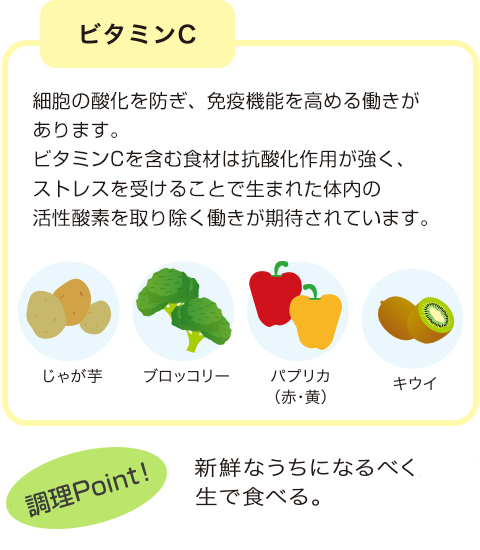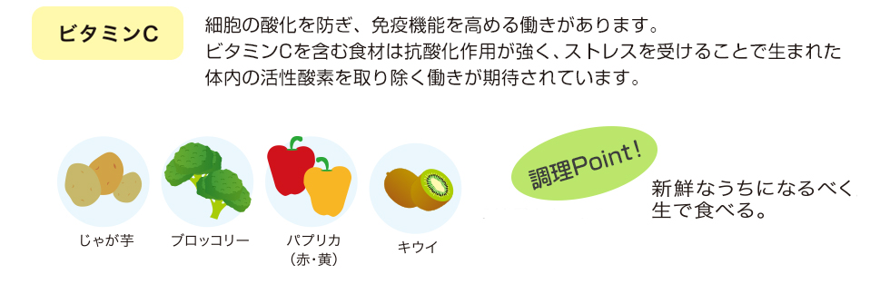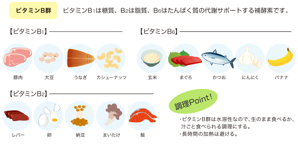 ⇒疲れにくいカラダを作るためには、カラダのエネルギー源となる三大栄養素の代謝をサポートするための栄養素や、疲労回復を助ける栄養素を普段の食生活に取り入れることが大切です。