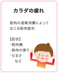 | カラダの疲れ | ・長距離マラソンなど激しい運動にチャレンジしたとき ・家事や肉体労働をしたとき など |