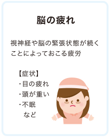| 脳の疲れ | ・長時間のデスクワーク ・スマホやTVゲーム など |