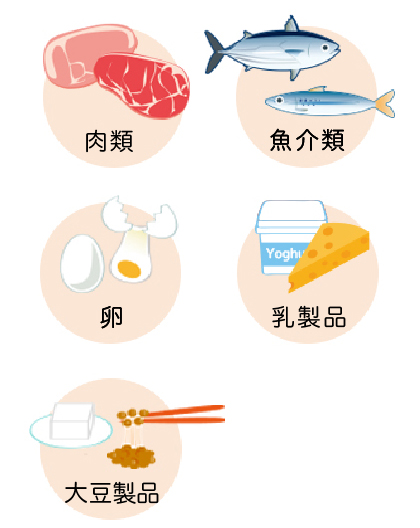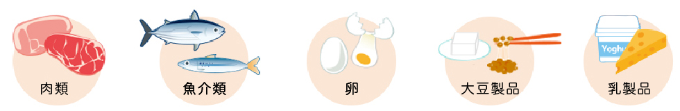 筋肉の構成成分となるアミノ酸をバランスよく含む良質なたんぱく質を摂取しましょう。