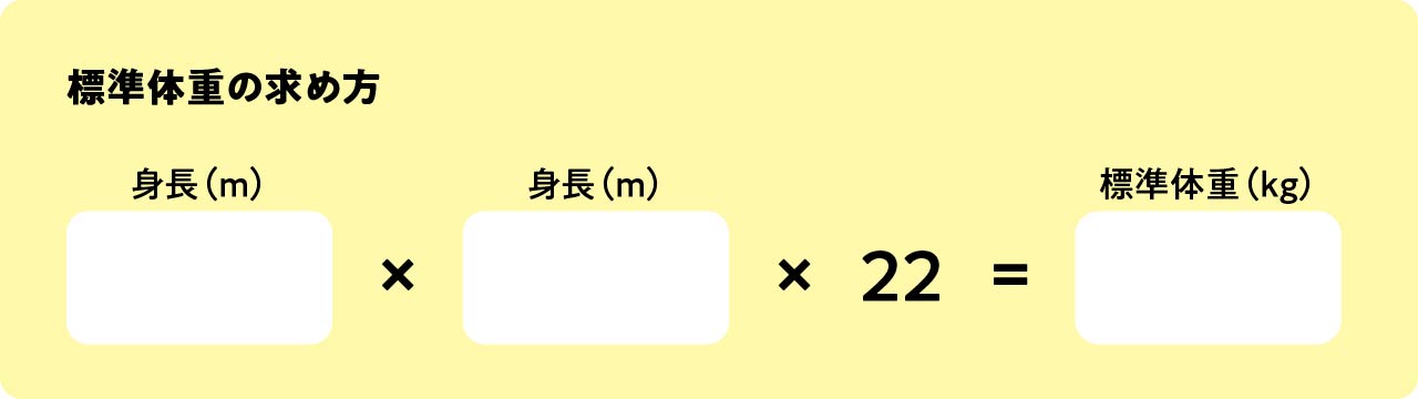 身長160㎝の方なら、1.6×1.6×22=56㎏となります。