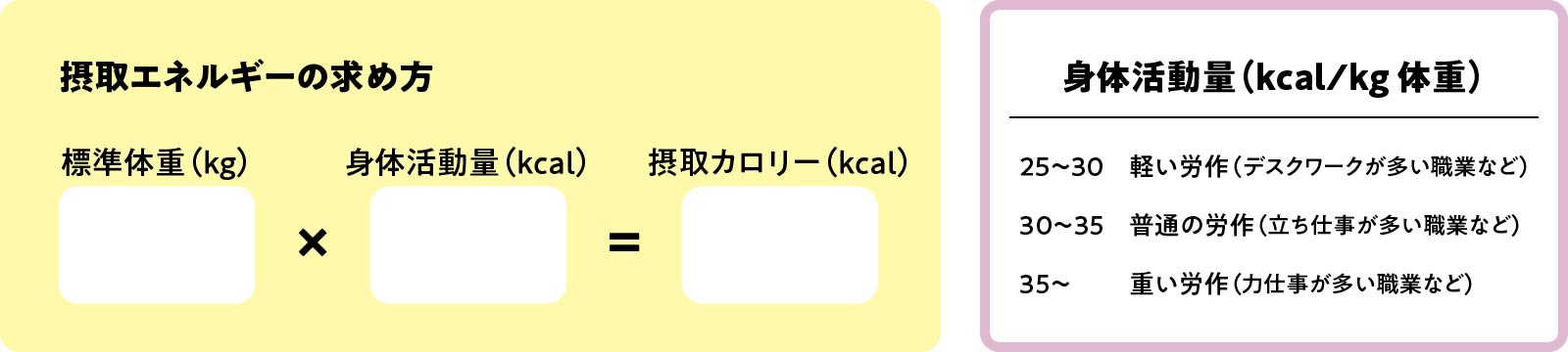 1)で求めた標準体重に身体活動量をかけてみよう。