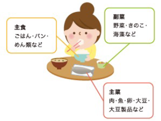主食・主菜・副菜を組み合わせた一汁三菜の食事を指します。