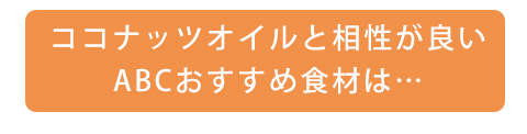 | 3.品質が低下しにくい | オリーブオイルや亜麻仁油などカラダに良いと言われる脂質も、酸化することによって質が低下してしまいます。ココナッツオイルは酸化しにくい性質を持っているため、質が低下しにくいという特徴があります。また熱にも強いため、高温調理にも向いています。 |