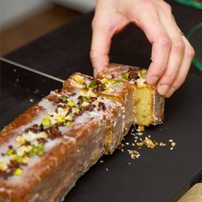 ルバーブとゆずのケーキ。酵母で作っているので、とても軽い食感。
