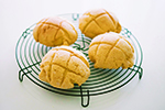 表面はカリッと、中はふんわりと焼き上げるメロンパン。生地には国産の小麦粉、砂糖はミネラルやビタミンを含むきび砂糖など、みんなが安心して食べられる食材を選んで使っています。