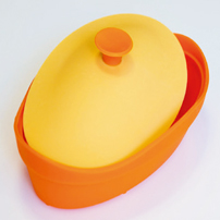 「忙しいときに便利」と愛用中の電子レンジ調理器。鶏のむね肉と野菜で作る蒸し鶏のサラダが定番だそう。