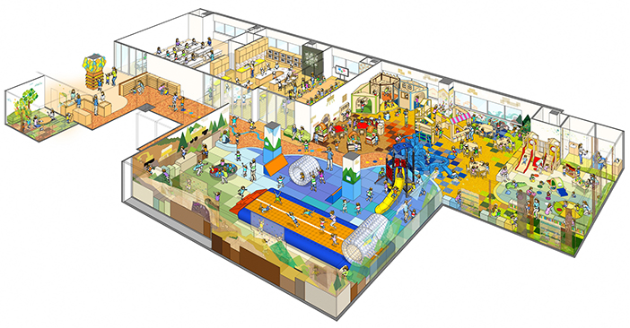 ABCが監修したクッキングスタジオが開業する「カブッキーランド」は、“創る・遊ぶ・学ぶ・安心・知る”を提供する、新たな子育て支援施設です。「親子で色々な学びが体験できる」をコンセプトに、「クッキングスタジオ」の他にも、遊び場作り企業ボーネルンドが運営協力する子供の個性や成長に合わせた大型遊具や知育玩具が設置された「すくすくひろば」、子育てに役立つ情報が得られ気軽に相談ができる「子育てスマイルステーション」、金沢大学と連携した公開講座などを行う「カルチャールーム」が入っています。