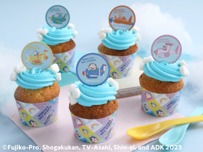 『映画ドラえもん のび太と空の理想郷(ユートピア)』をイメージして、ホワイトチョコ入りのカップケーキにクリームをしぼり、マシュマロをトッピングしたケーキです。