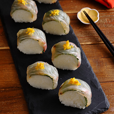鯛のポワレ柿ソース、簡単!旬魚の昆布〆風ロール寿司