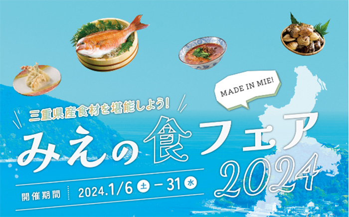 大阪・関西万博の開催を契機として国内外からの観光客増加が期待されるなか、三重県は「みえの食」の利用拡大を図るとともに、多くの方に改めて県産食材の良さを知ってもらう機会として2024年1月6日より「みえの食フェア2024」を開催します。